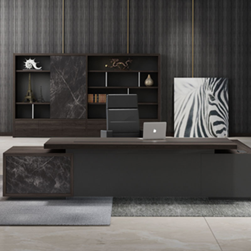 班臺主臺面,附柜面板,側板,頂, 底板維納橡木BS-78, 其余深鐵灰BS-19/背柜小中豎板深鐵灰BS-19,其余為維納橡木BS-78
