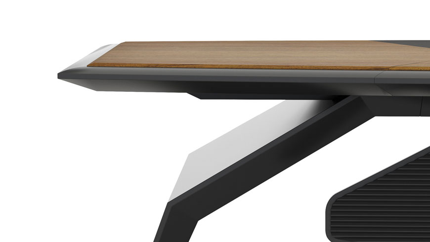 船型雙層桌板設(shè)計(jì),隱藏式走線,內(nèi)嵌皮質(zhì)桌墊