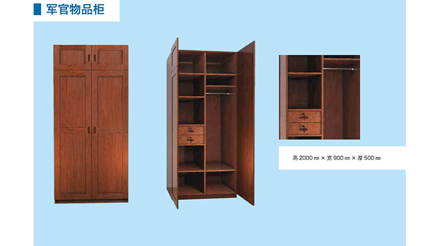 軍官物品柜所有基材使用實(shí)木原木,經(jīng)防蟲(chóng)干燥處理,抗彎力強(qiáng),不扭曲,無(wú)變形,外觀要求:無(wú)蟲(chóng)蛀、無(wú)裂縫、無(wú)節(jié)子。