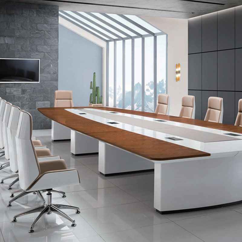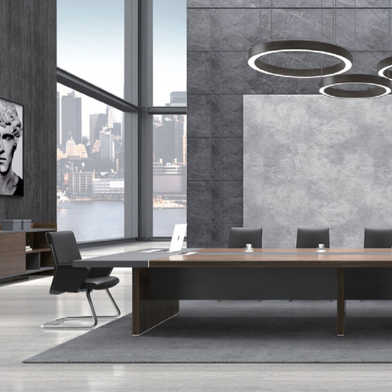 一、會(huì )議桌參數1.尺寸:長(cháng)4800mm×寬1800mm×高760mm2.基材:采用E1級中密度纖維板,甲醛釋放量≤0.05mg/m3,總揮發(fā)性有機化合物(TVOC)≤100μg/m3,握螺釘力(板面)≥1500N,握螺釘力(板邊)≥1000N,靜曲強度≥35Mpa,彈性模量≥4000Mpa,內結合強度≥1.2Mpa,符合GB/T11718-2021《中密度纖維板》、GB/T35601-2017《