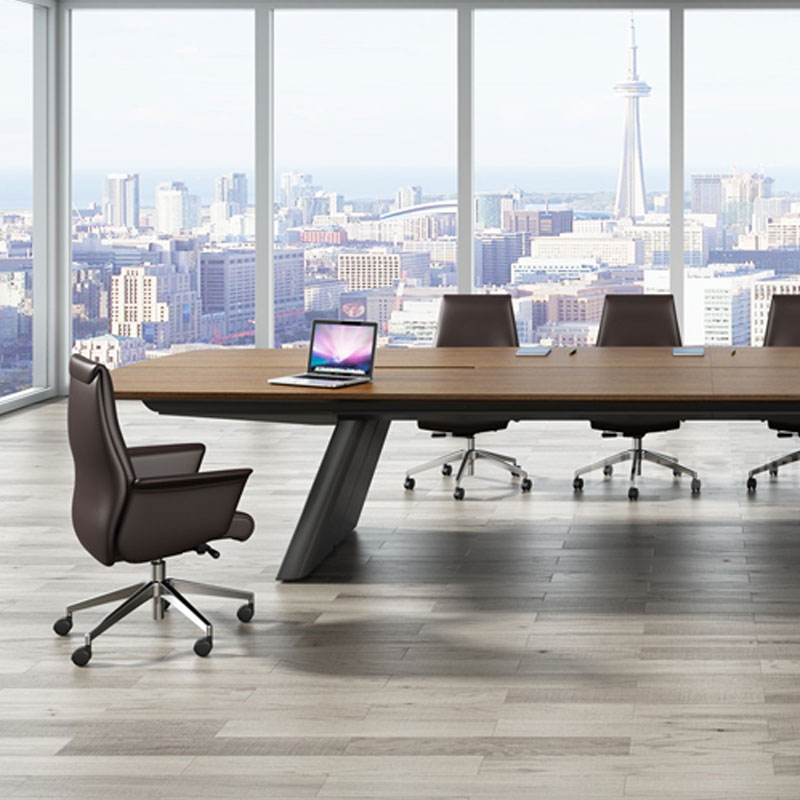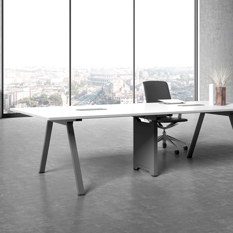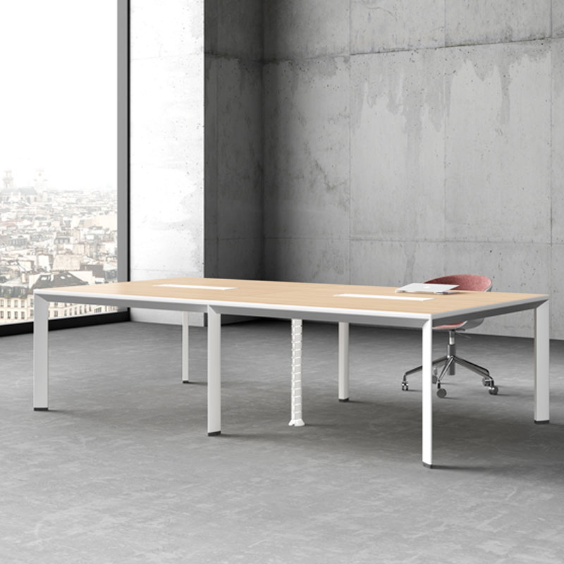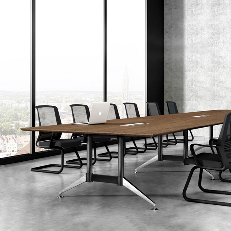 桌板;25mm厚度MFC,過(guò)防蟲(chóng) 、防腐、防潮等處理;游離甲醛釋放量<0.05mg/L,PVC封邊桌腳:斜腿框架為“首鋼/寶鋼”優(yōu)質(zhì)冷軋鋼板,做防銹、防腐、酸洗、磷化處理,表面靜電噴塑,帶調節腳線(xiàn)盒:含阻尼式鋁合金毛刷線(xiàn)盒中間片腳上線(xiàn)或蛇形管上線(xiàn)