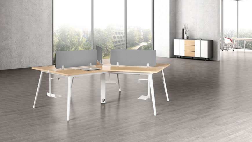 桌板;25mm厚度MFC,過(guò)防蟲(chóng) 、防腐、防潮等處理;游離甲醛釋放量<0.05mg/L,PVC封邊桌腳:斜腿框架為“首鋼/寶鋼”優(yōu)質(zhì)冷軋鋼板,做防銹、防腐、酸洗、磷化處理,表面靜電噴塑,帶調節腳線(xiàn)盒:含阻尼式鋁合金毛刷線(xiàn)盒中間片腳上線(xiàn)或蛇形管上線(xiàn)
