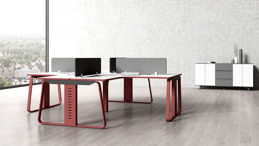 桌板;25mm厚度MFC,過(guò)防蟲(chóng) 、防腐、防潮等處理;游離甲醛釋放量<0.05mg/L,PVC封邊桌腳:斜腿框架為“首鋼/寶鋼”優(yōu)質(zhì)冷軋鋼板,做防銹、防腐、酸洗、磷化處理,表面靜電噴塑,帶調節腳蛇形管上線(xiàn)