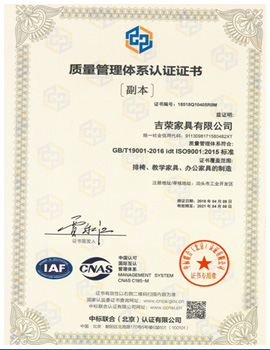 通過(guò)ISO9001、ISO14001、GB/T45001等多項認證。并獲得多款學(xué)生課桌椅,宿舍公寓床系列的發(fā)明專(zhuān)利、實(shí)用新型專(zhuān)利、外觀(guān)設計專(zhuān)利。 |