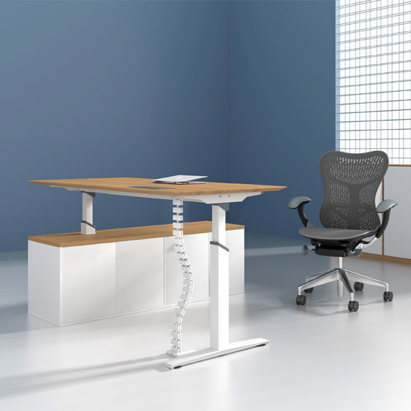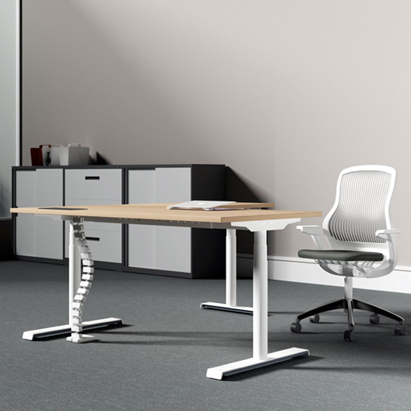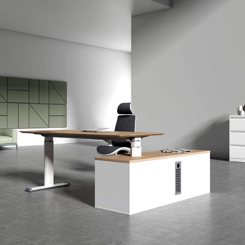 氣動(dòng)升降桌臺面:E1級MFC桌面,過(guò)防蟲(chóng) 、防腐、防潮等處理;游離甲醛釋放量< 0.05mg/L