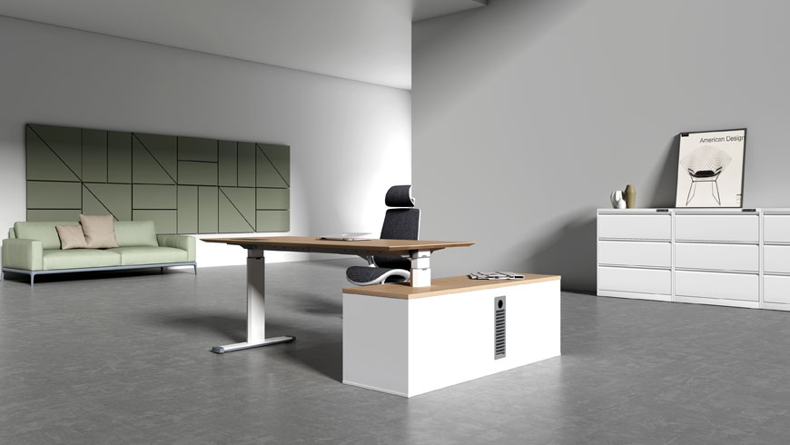 臺面:E1級MFC桌面,過(guò)防蟲(chóng) 、防腐、防潮等處理;游離甲醛釋放量< 0.05mg/L腳: 腳管Q235, φ70*2.0mm厚三節升降。底腳: ADC12壓鑄鋁合金, 5mm厚。橫梁: Q235方管25*50*, 1.5mm厚。腳蓋: ABS。腳墊: ABS。連接螺絲: 45#鋼,定做粗牙加硬,能更有效的與鋁型材連接,不易滑牙。升降系統:雙電機升降。臺架升降高度700