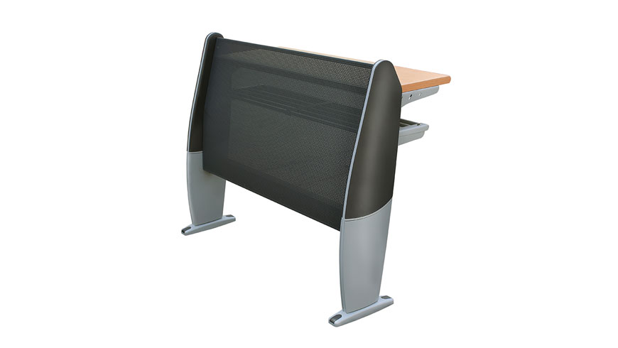 6、桌面為25mm厚“福人”密度板雙貼“盟禾”防火板,上面貼“盟禾”環(huán)保防火板,底面貼相近國產(chǎn)防火板,坐人面做半圓后成型處理,其余三邊用2mm “兄奕”P(pán)VC封邊,符合《室內裝飾裝修材料人造板及其制品中甲醛釋放限量》(GB18580-2017)標準。