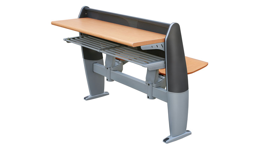 1、立腿采用壓鑄鋁合金,用板型壓鑄,上部圓弧形設計,安全系數高,立柱厚度12mm,底腳長(cháng)度265mm。鋁腿外側覆ABS工程塑料飾板,模具成型,牢固易拆裝。