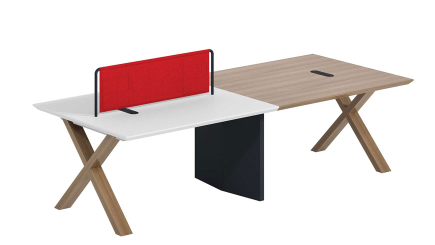 E1級MFC板材,臺面底板鑼斜邊封邊,實木X腳,臺面不配線盒,副柜帶118多功能插座,插座可上線,檔板可折疊顏色:可選米白、雅灰