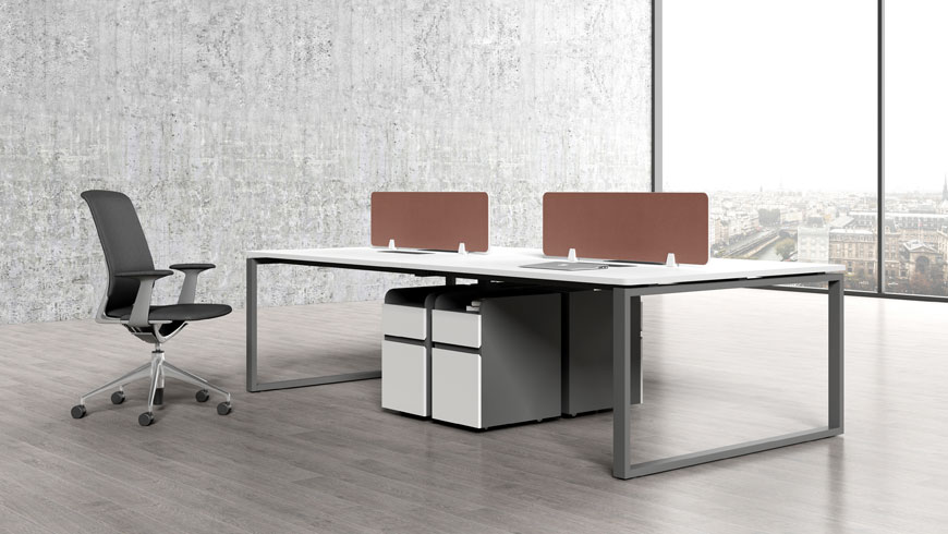 臺(tái)面:E0級(jí)MFC桌面,過防蟲 、防腐、防潮等處理;游離甲醛釋放量< 0.05mg/L桌腳:斜腿框架為優(yōu)質(zhì)冷軋鋼板,做防銹、防腐、酸洗、磷化處理,表面靜電噴塑,帶調(diào)節(jié)腳;桌面含阻尼式鋁合金毛刷翻蓋,桌屏可選 鋼制屏風(fēng)、木板捫布屏風(fēng)、亞克力屏風(fēng)上線:優(yōu)質(zhì)蛇形走線管上線或者片腳上線