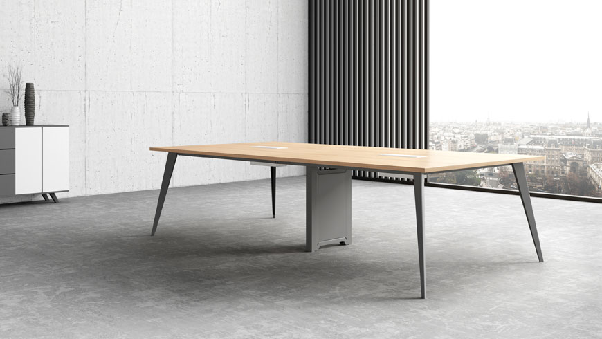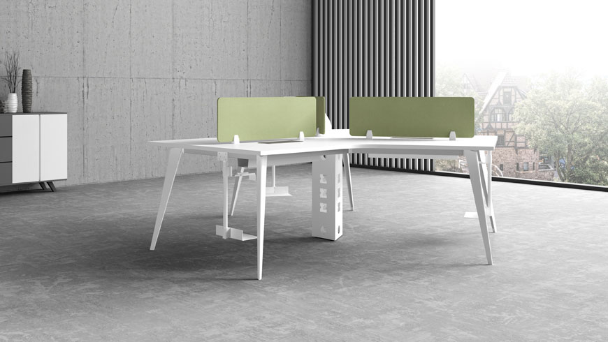 臺(tái)面:E0級(jí)MFC桌面,過防蟲 、防腐、防潮等處理;游離甲醛釋放量< 0.08mg/L桌腳:斜腿框架為優(yōu)質(zhì)冷軋鋼板,做防銹、防腐、酸洗、磷化處理,表面靜電噴塑,帶調(diào)節(jié)腳;桌面含阻尼式鋁合金毛刷翻蓋,桌屏可選 鋼制屏風(fēng)、木板捫布屏風(fēng)、亞克力屏風(fēng)上線:優(yōu)質(zhì)蛇形走線管上線或者片腳上線