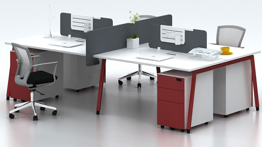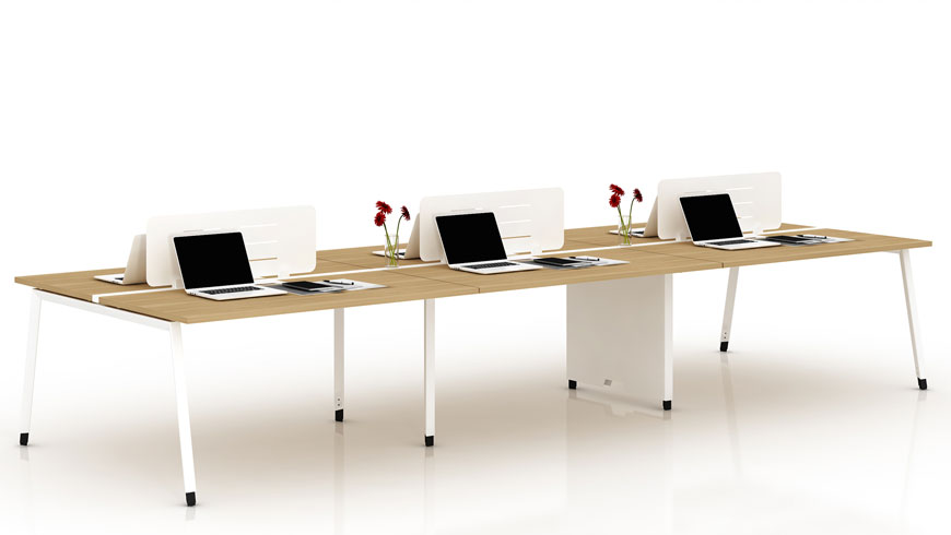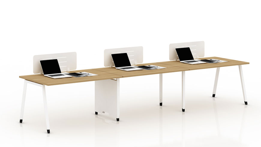 臺(tái)面:E0級(jí)MFC桌面,過防蟲 、防腐、防潮等處理;游離甲醛釋放量< 0.10mg/L桌腳:斜腿框架為優(yōu)質(zhì)冷軋鋼板,做防銹、防腐、酸洗、磷化處理,表面靜電噴塑,帶調(diào)節(jié)腳;桌面含阻尼式鋁合金毛刷翻蓋,桌屏可選 鋼制屏風(fēng)、木板捫布屏風(fēng)、亞克力屏風(fēng)上線:優(yōu)質(zhì)蛇形走線管上線或者片腳上線